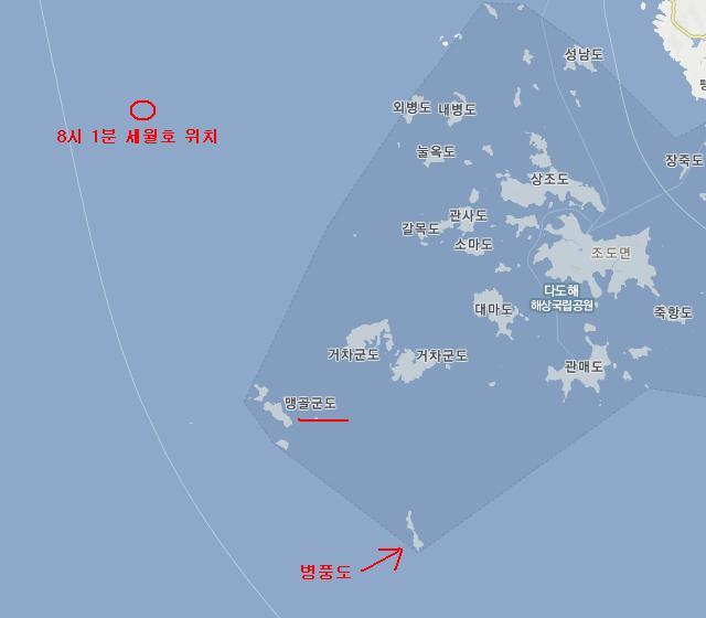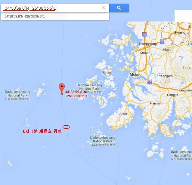 세월호의 침몰 위치는 이미 잘 알려져 있습니다.