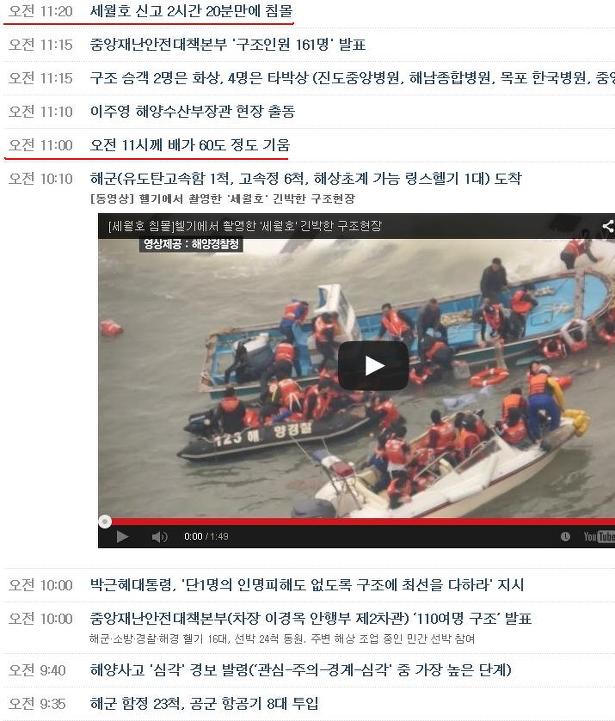 완전 침몰한 것은 11시 20분이라고 보도해더니만.....
