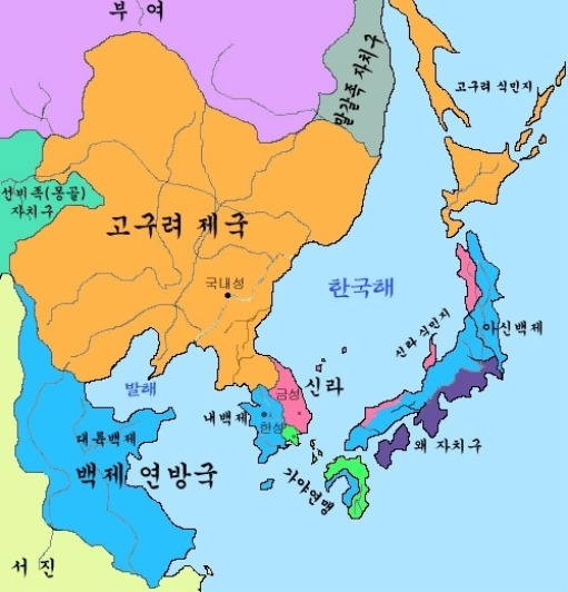 이 지도는 우리 조상인 동이의 나라인 고구려, 백제, 신라, 가야, 부여가