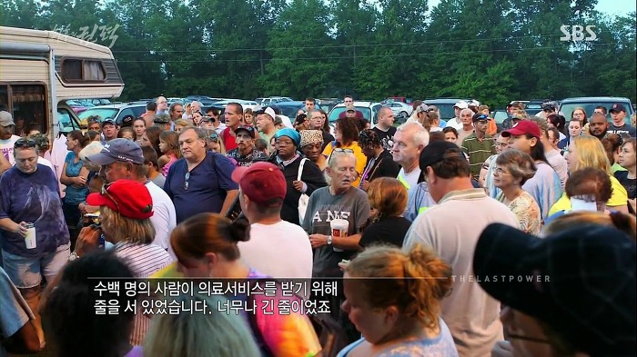 의료봉사 서비스를 받으려고 줄선거...