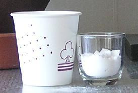 종이컵 윗부분 1cm정도 남기고 물을 채우면 180cc입니다.